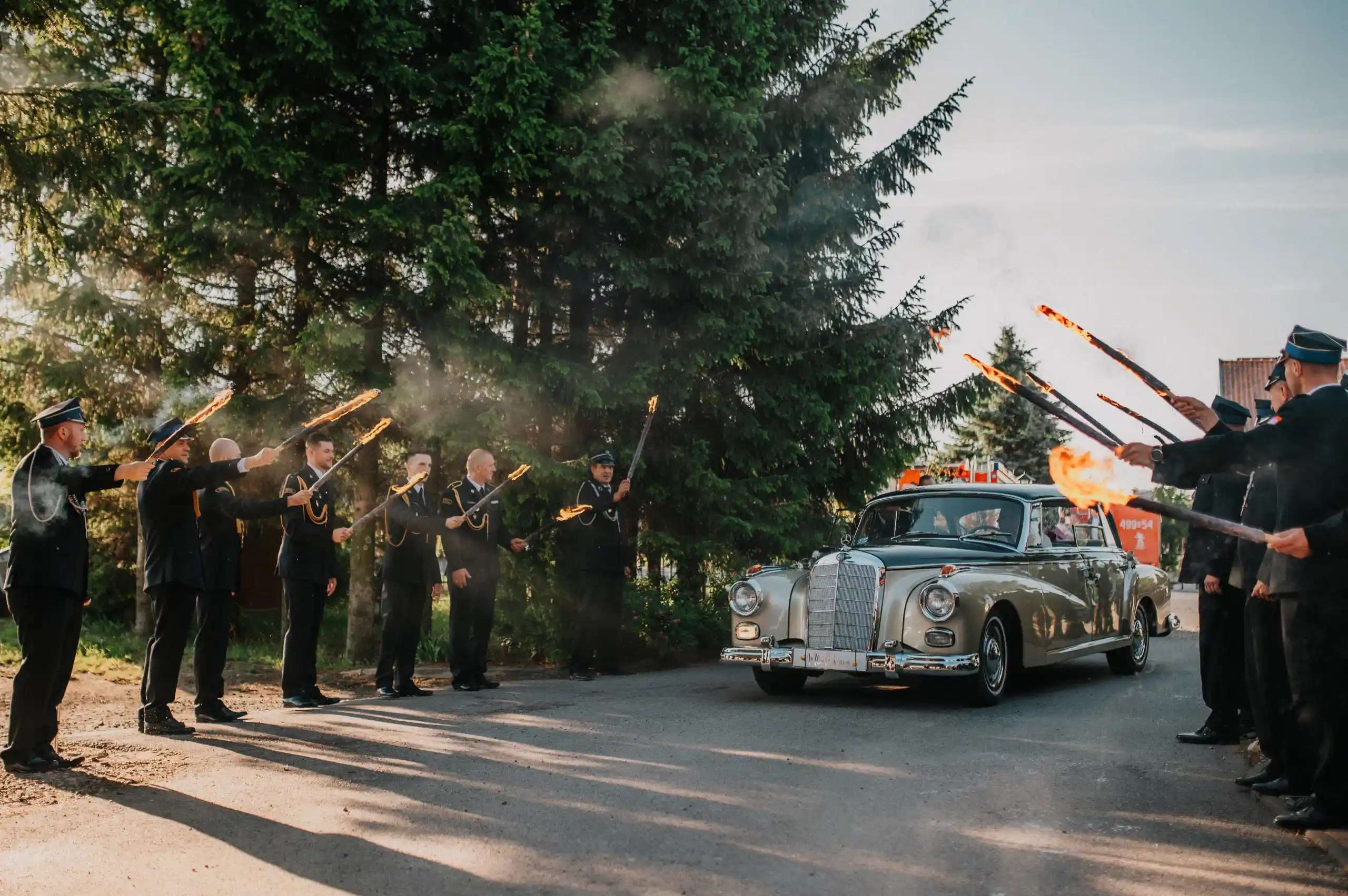Fotograf ślubny ma przyjemność pracować w pięknych miejscach. Ola z Damianem wybrali Sanktuarium w Świętej Lipca na miejsce złożenia sobie przysięgi małżeńskiej. Mazurska sceneria, lipcowy upał i strażacy nadali klimatu całej uroczystości.