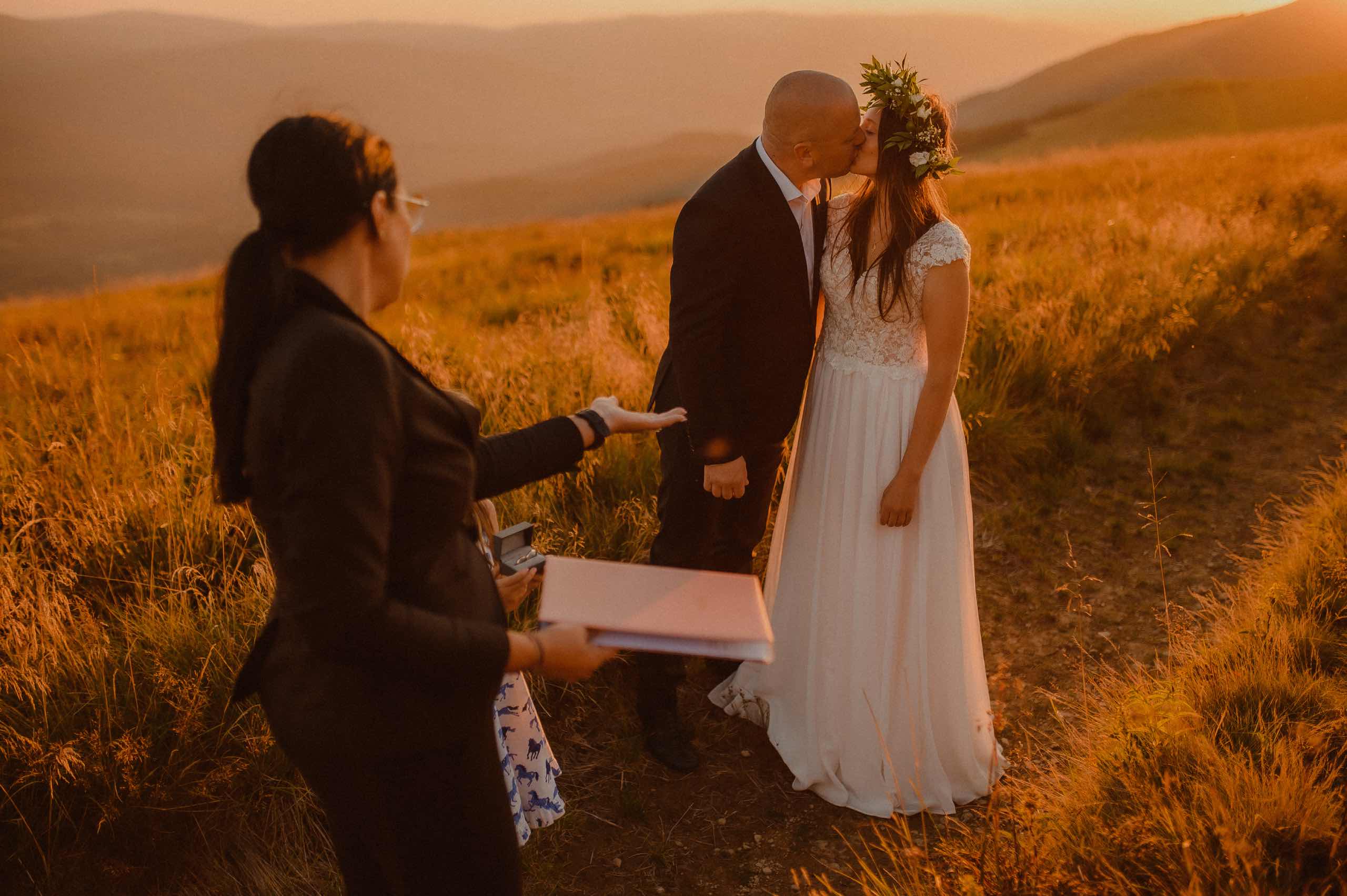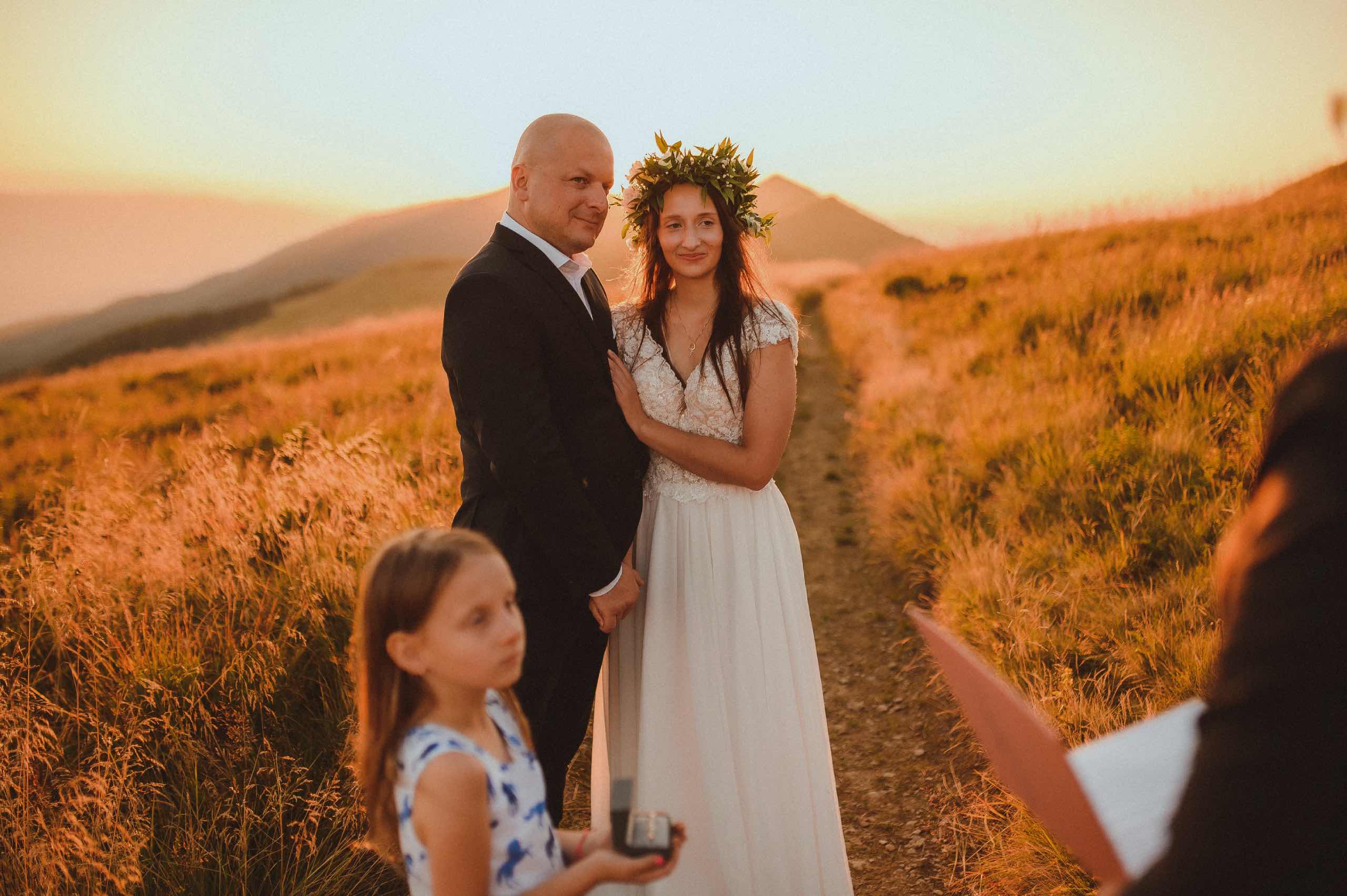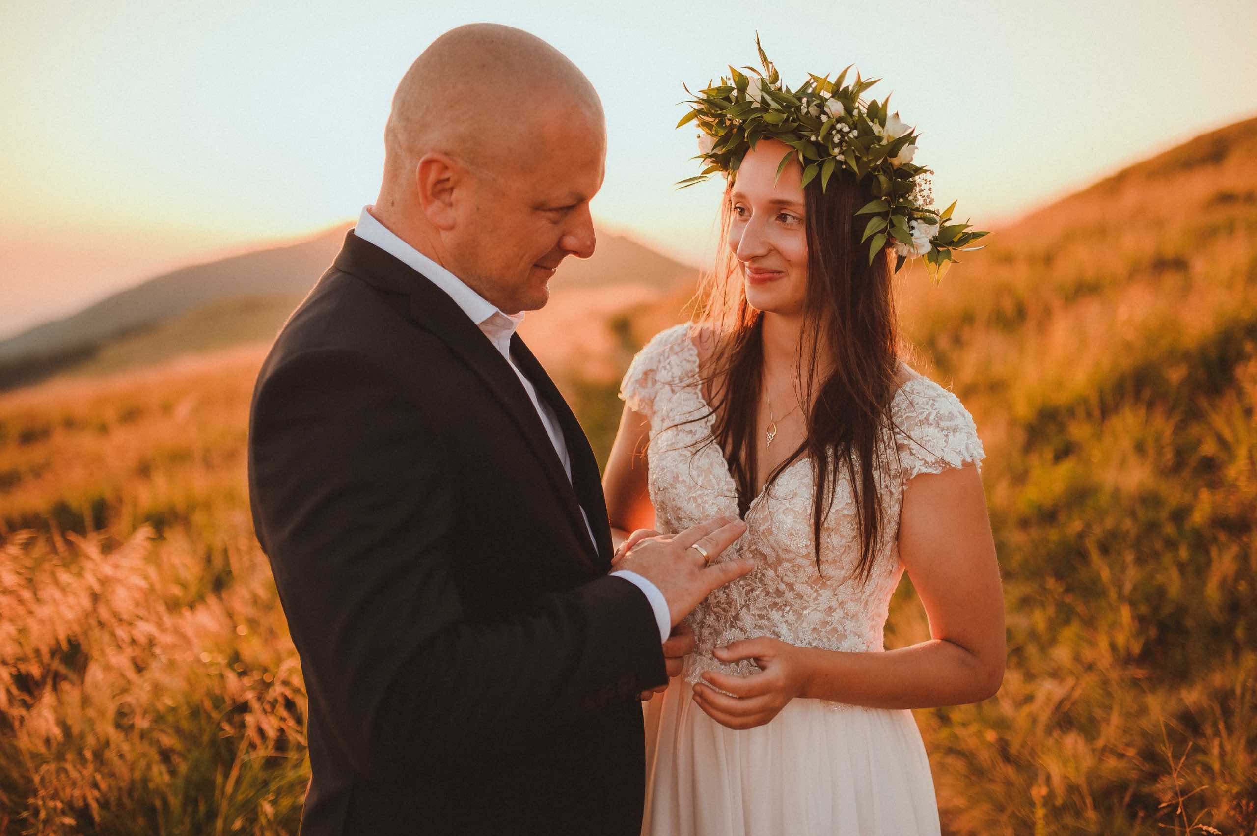 Gdy fotograf ślubny dostaje propozycję, aby sfotografować ślub w innym miejscu niż na codzień spędza czas nie może odmówić. Przynajmniej ja tak myślę. Zmiana scenerii z Warmińskich krajobrazów na piękne Bieszczadzkie góry działa inspirująco. Świeżość jaką nadaje zmiana krajobrazu dodaje ogrom energii do działania. Dlatego wiedziałam, że nie mogę odmówić tego ślubu. W sierpniowy upalny dzień ruszyliśmy spod parkingu na samą przepiękną Połoninę Wetlińską, gdzie Patrycja z Darkiem przysięgli sobie miłość. Piękny zachód słońca, uśmiechy i łzy szczęścia. Jedna z piękniejszych przygód w górach jaki sobie wyśniłam.